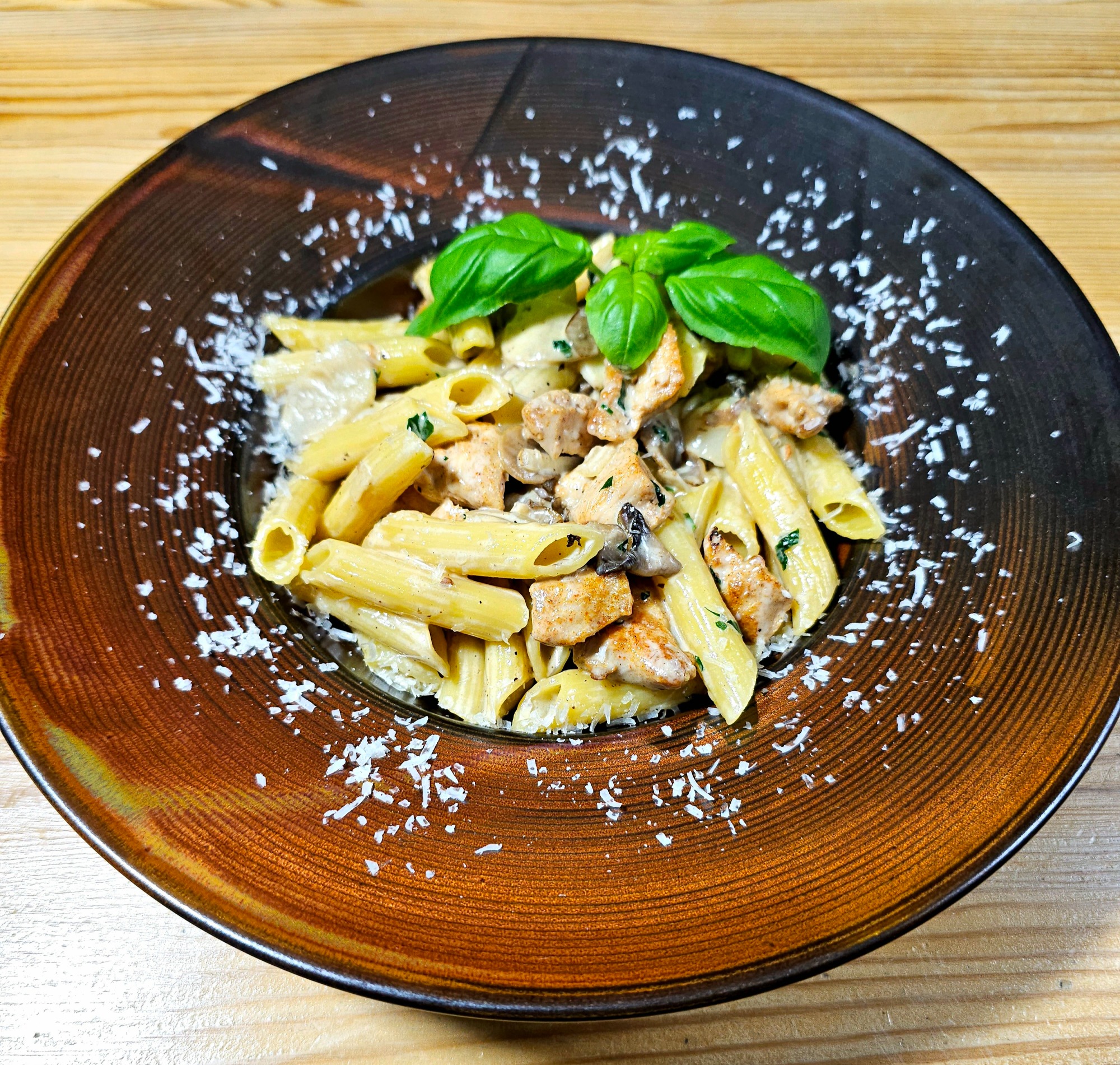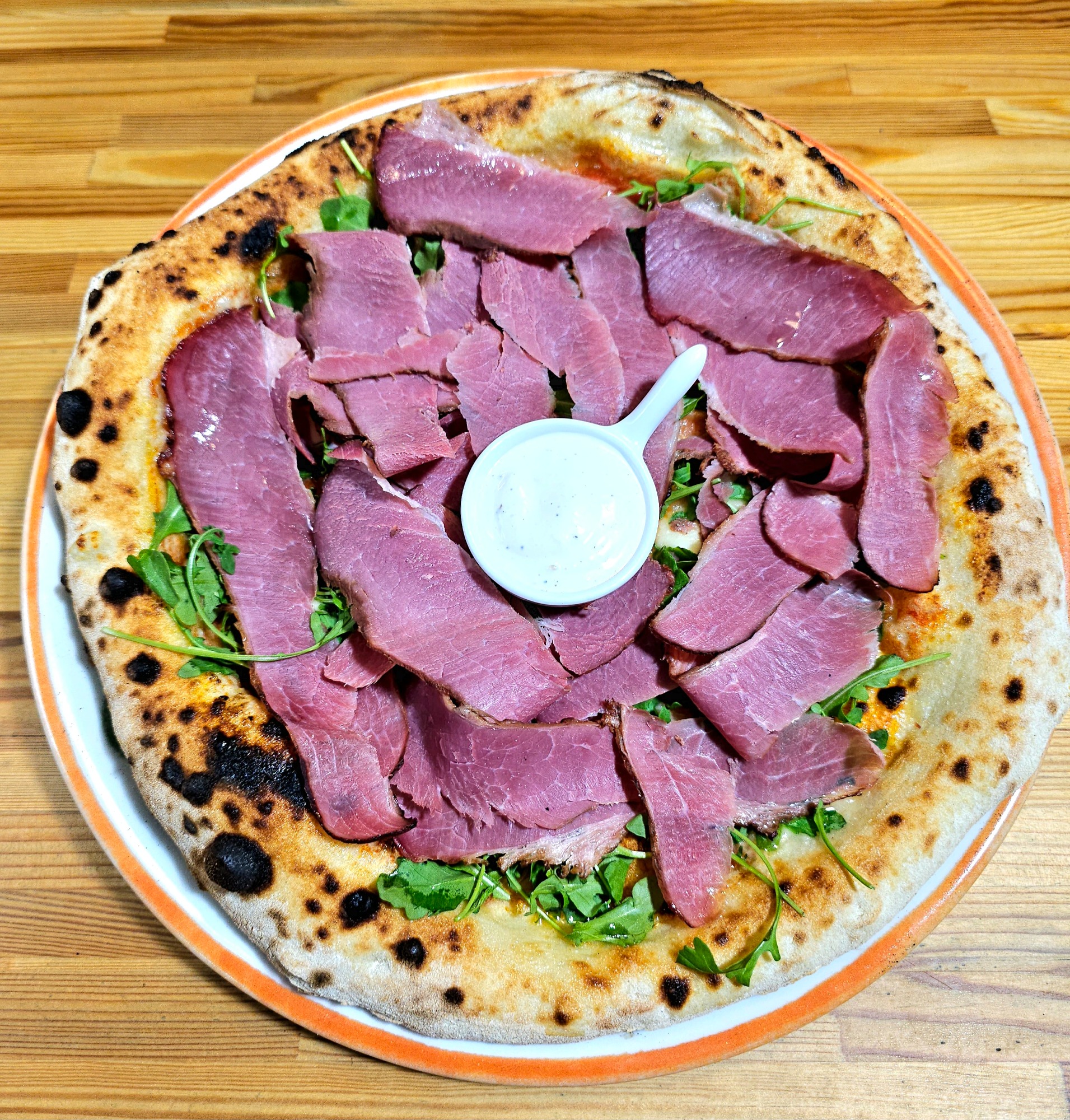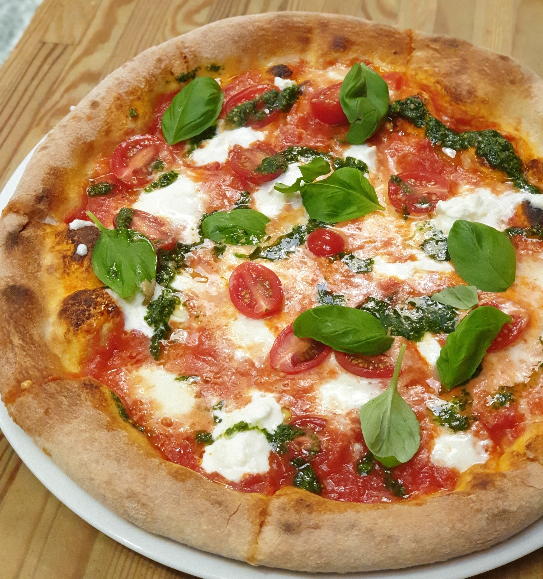 bianca, pesto bazyliowe, marynowana pierś z kurczaka, po wyjęciu z pieca: sałata rzymska, pomidorki cherry, ogórek kiszony, sos cezar52,00 zł -