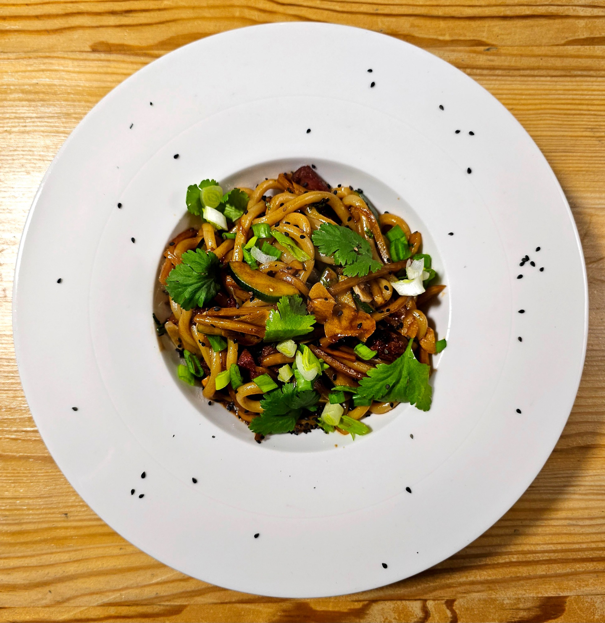 mleko kokosowe, pieczarki, papryka, dymka, kolendra, trawa cytrynowa, z kurczakiem -