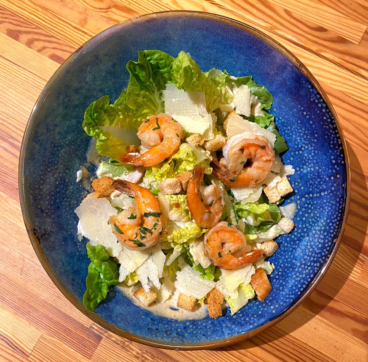 krewetki tygrysie z kiełbasą chorizo na białym winie z czosnkiem podane z pieczywem własnego wypieku